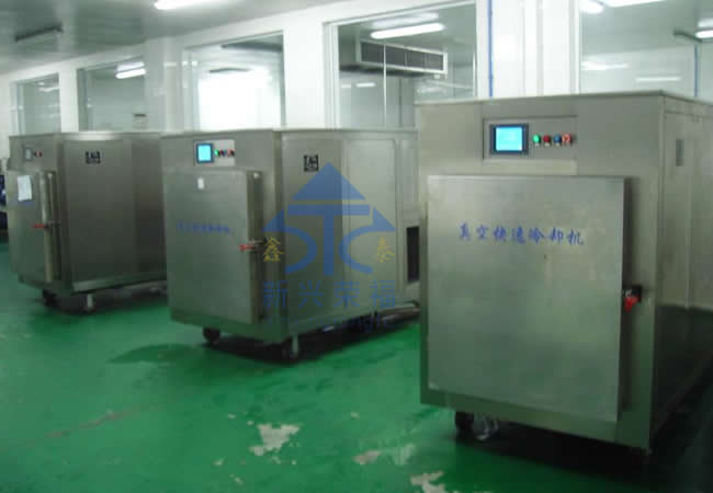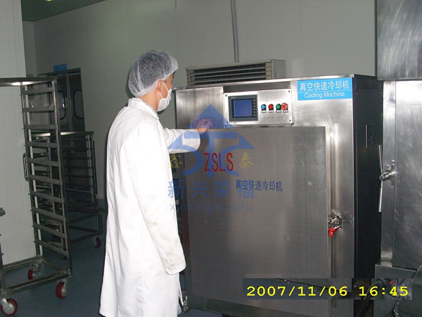 由于食品適宜細(xì)菌繁殖的溫度帶是 20--65 ℃ 。真空快速冷卻能夠迅速降低熟食品出鍋后的熱量,防止高溫下的食品氧化,同時由于食品在密封的真空環(huán)境下快速冷卻,可以避免空氣中細(xì)菌再次污染。 從而延長保質(zhì)期。